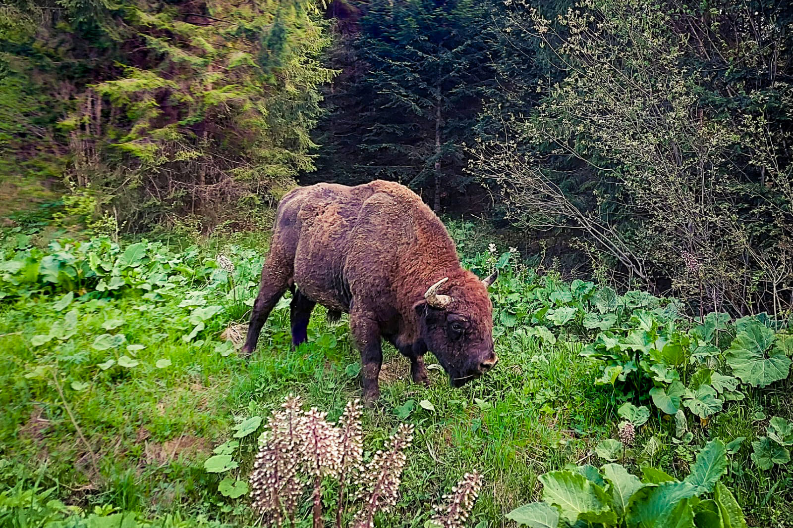 Po śniadaniu ruszamy w teren z Robertem Gatzką. Czeka nas ok. 4-godzinna wycieczka przez dziki karpacki las na terenie Ciśniańsko-Wetlińskiego Parku Krajobrazowego. Bieszczadzkie lasy to dom dla wielu dużych ssaków kopytnych – żubrów, jeleni, saren, a niekiedy także łosi. W ich śladach kryją się opowieści o życiu dzikiej przyrody, które nauczymy się odczytywać w terenie.