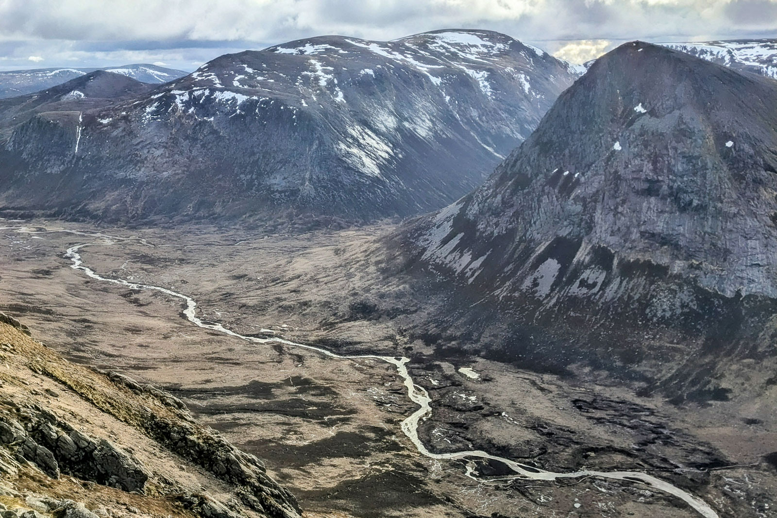 Nasza wyprawa ma na celu trawers pasma Cairngorms, leżącego w Grampianach Wschodnich. To najdzikszy, słabo zaludniony i praktycznie niezabudowany masyw, objęty w całości parkiem narodowym. Można tu jednak swobodnie wędrować i biwakować na dziko. Cairngorms to największy płaskowyż na Wyspach Brytyjskich. Teren o surowym charakterze, zimą zbliżonym do arktycznego. Wyjątkowy na tle innych rejonów Szkocji – mieści 5 z 6 najwyższych szczytów w kraju. Na standardy kontynentalne, omiatane wiatrem znad oceanu góry Cairngorms, nie imponują może bezwzględną wysokością, ale płaskowyż ten zdecydowanie wyróżnia się i wyrasta ponad otaczające go tereny. Najbliższe wyższe góry znajdują się dopiero w Norwegii.